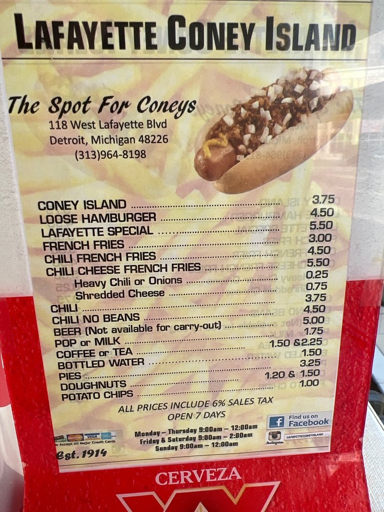 Lafayette Coney Island Menu